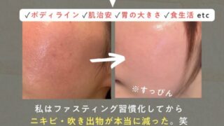 daiet ◻ファスティングの変化 食べる物を変えれば身体は変わる。 体重だけじゃなくて肌やボディライン、 食生活も変わるのがファスティングの楽しいところ? ◻ファスティングのやり方 鉄則として「無理はしない」こと! 私は基本食べ過ぎリセット目的が多く、胃を休めるために緩くやってるよ。