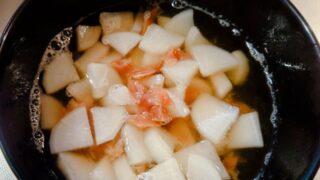 daiet 夜は「梅流し」をゆっくりゆっくり。 大根と梅干しをお出汁で煮込んで、汁ごとゆっくり咀嚼。便秘解消にもってこいで断食後だとさらに効果が出やすいのでファスティング後の回復食にされることも多いんだとか✍️ めちゃくちゃお腹グルグル鳴るw 効果てきめん? 体重はここ3日で-2.3㌔?