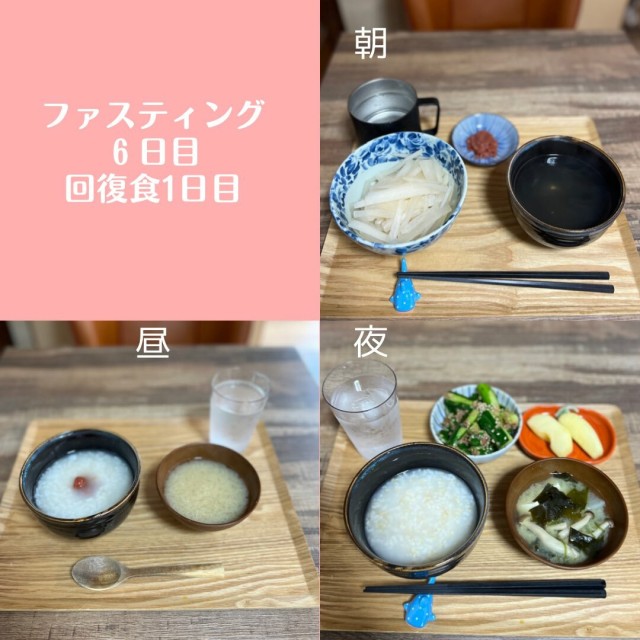 【ファスティング6日目】 回復食1日目 朝:スッキリ大根 昼:梅がゆ・具なし味噌汁 夜:玄米粥・豆腐とワカメとしめじと大根の味噌汁・きゅうりの梅肉和え・りんご 体重:-4.5㌔←やばっ でも、一発目のスッキリ大根は本当に凄かった! daiet X Facebook はてブ Pocket LINE コピー 2024.03.16 [Agent_T_CONTENTS]