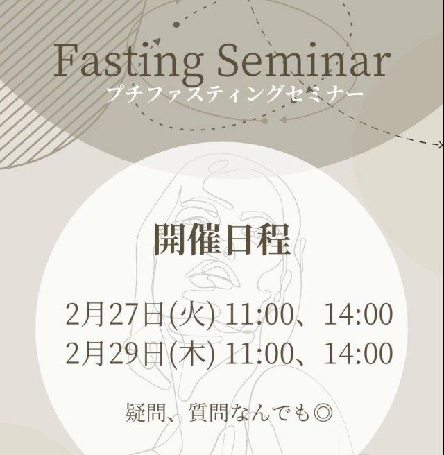 おはようございます♪ 本日はプチファスティングセミナー開催日! 疑問、質問なんでもOKです?♀️ ・所要時間は1時間程度 ・無料 ・対面、またはオンライン(zoom)で受講可能 お気軽にお問合せください♪ daiet X Facebook はてブ Pocket LINE コピー 2024.02.27 [Agent_T_CONTENTS]