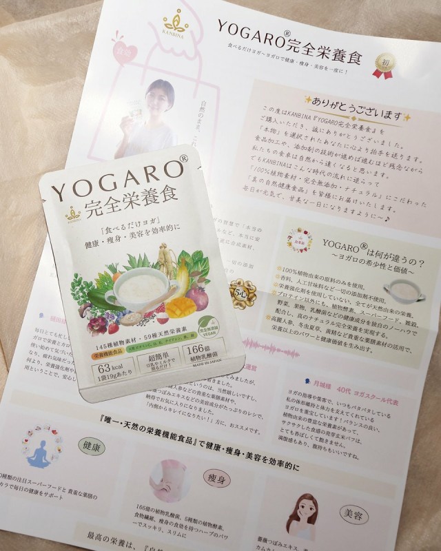 コエタスのモニターキャンペーンでもらった YOGARO完全栄養食 についてのレビューです ヨガ後に! ファスティングダイエットに! ちょい足しに! 大豆プロテイン他、植物乳酸菌等配合 牛乳やヨーグルトに混ぜて ほんのり甘い♪ daiet X Facebook はてブ Pocket LINE コピー 2024.03.19 [Agent_T_CONTENTS]